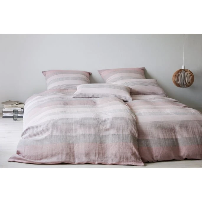 Die wunderschöne Fjord Bettwäsche aus dem Hause elegante besticht durch den spannenden Farbkontrast und die eleganten Querstreifen. Aus einem Leinen-Baumwoll-Mix gefertigt, ist das Material besonders atmungsaktiv und liegt angenehm auf der Haut. Mithilfe des praktischen Verschlusses ist das Auf- und abziehen des Bezuges ganz einfach und schnell. In unserem Ambiendo Shop erhalten Sie das Fjord -Set in verschiedenen Größen und Farbvarianten. Wenn Sie möchten, können Sie die Kissenbezüge auch einzeln bestellen. Kaufen Sie sich die Fjord Bettwäsche schon jetzt und erleben Sie wunderbar erholsame Nächte!