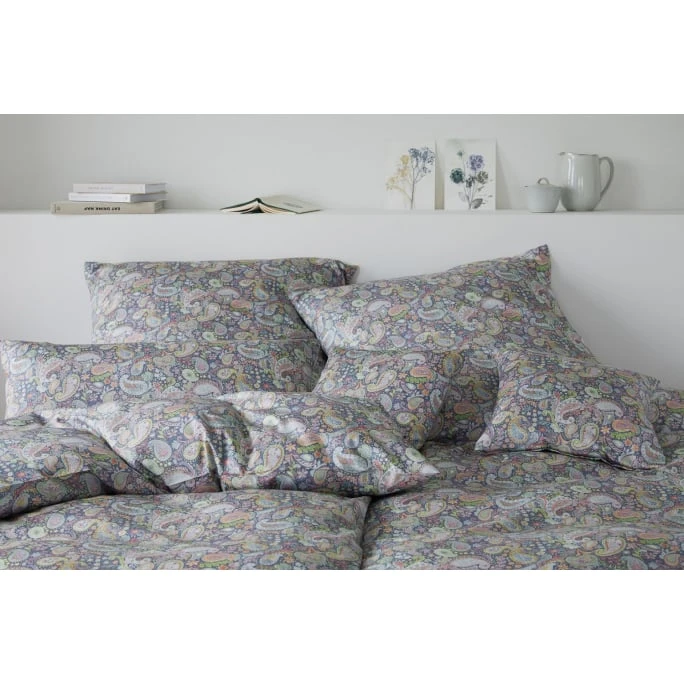 Das Paisley Muster, hat seinen Namen einer Stadt in Schottland zu verdanken, die im 19.Jahrhundert das Muster in Europa mit etablierten. Seinen Ursprung hat es jedoch im Orient und schmückt bis heute, zahlreiche Stoffe und Objekte und lässt sich immer wieder neugestalten. Eine besondere Kombination ist elegante auf der Bettwäsche Fortune gelungen, die man sich gerne ins Schlafzimmer holt. Das hochwertige Mako-Satin wurde in verschiedenen Farbnuancen bedruckt und in verschiedenen Größen hergestellt. Die 100% Baumwolle ist anschmiegsam und bereits beim ersten Hautkontakt, lässt sich die hochwertige Qualität von elegante Fortune spüren. Für den unkomplizierten Wechsel der Wäsche ist der Reisverschluss ausgewählt worden und spart so lästige Knöpfe öffnen und schließen. Verschönern Sie Ihr Schlafzimmer mit den Jahrtausende alten Muster, dass Moderne kaum zu übertreffen ist. Im AMBIENO Shop haben Sie die Möglichkeit, die Kissenbezüge auch einzeln zu bestellen.