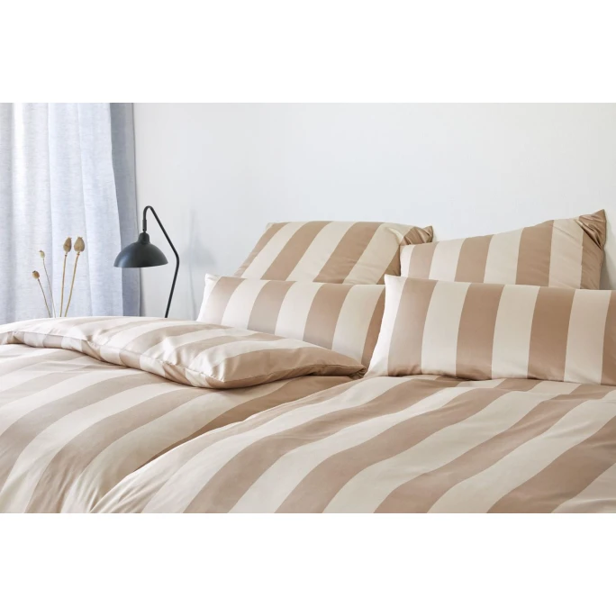 Keep it simple! Das elegante Natural Stripe Bettwäsche-Set mit dem Steifen-Design ist ein echter Klassiker im Schlafzimmer. Herrlich leicht und anschmiegsam fühlt sich die Bettwäsche auf der Haut an und garantiert hohen Schlafkomfort. Aus 100% feinster Baumwolle gefertigt ist die Natural Stripe Bettwäsche besonders hautfreundlich und dank dem praktischen Verschluss einfach abnehmbar. Das Natural Stripe-Set ist in unserem Ambiendo Shop in mehreren Größen und Farbstellungen erhältlich und passt perfekt in jede Einrichtung. Wenn Sie möchten, können Sie die Kissenbezüge auch einzeln bestellen. Lassen Sie sich von der geschmackvollen elegante Natural Stripe Bettwäsche bezaubern und bringen Sie die gemütliche Atmosphäre in Ihr Zuhause!