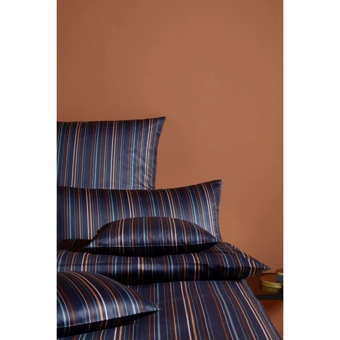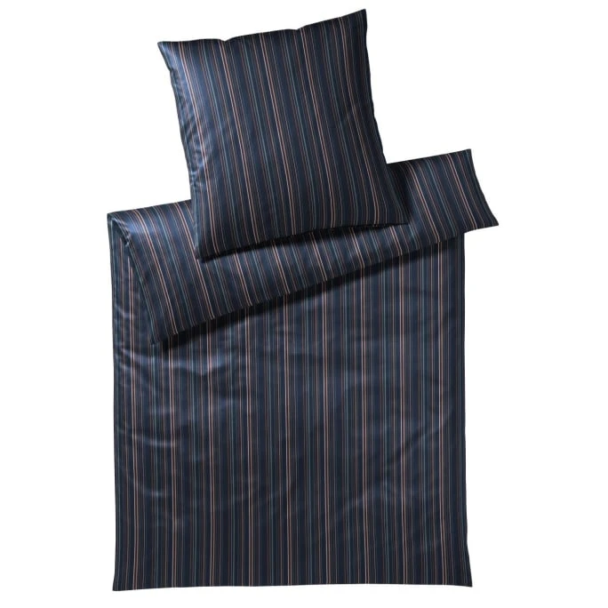 Die Solitaire Bettwäsche-Serie von elegante ist einfach ein echter Hingucker! In vier Farb- und sechs Größenvarianten und als Jersey-Bettwäsche erhältlich, überzeugt das zart glänzende Satingewebe durch einen ganz besonderen Look. Während der Hintergrund des 240 cm x 220 cm großen Bettwäsche-Sets ein hauchfeines Pünktchenmuster aufweist, überziehen unterschiedlich breite und farbige, vertikale Linien das reine Baumwollgewebe. Der praktische, verdeckte Reißverschluss erleichtert dabei das einfache Ab- und Beziehen der Bezüge. Solitaire wird mit zwei 80 cm x 80 cm großen Kopfkissenbezügen geliefert und kann problemlos bei 60° in der Waschmaschine gereinigt, im Trockner getrocknet und bei mittlerer Temperatur gebügelt werden. Und wenn Sie es besonders kuschelig mögen: Hier im Shop bietet AMBIENDO Ihnen – passend zu dem Solitaire Bettwäsche-Set – auch den Einzel-Kopfkissenbezug von elegante an. Lassen Sie sich von der hohen Qualität begeistern und erleben das seidig-zarte Gefühl auf Ihrer Haut!