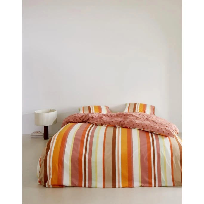 Pünktchen oder Streifen? Mit der Bettwäsche Feija von Essenza können Sie beides haben! Auf der Vorderseite sind verspielten Streifen und auf der Rückseite ein süßes Punktmuster. Die Bettwäsche besteht aus weichem und geschmeidigem Perkal, welches aus 100% Baumwolle gefertigt ist. Zudem verfügen der Decken- und der Kissenbezug über einen Reißverschluss. Somit ist ein bequemes Ab- und Beziehen garantiert. Die Bettwäsche-Garnitur Feija von Essenza im Wende-Look sorgt für einen angenehmen Schlafkomfort. Sie können diese exklusive Bettwäsche in verschiedenen Größen und Farben in unserem Shop erwerben.