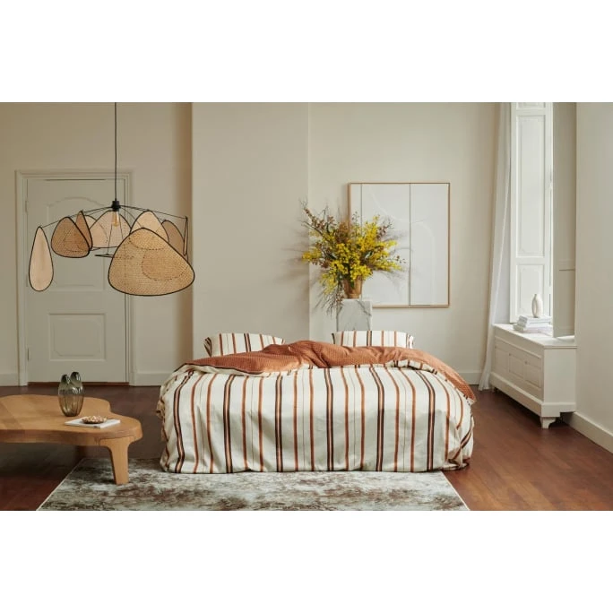 Die Lifestyle-Marke Essenza steht für Inspiration, Kreativität und Expressivität. Neueste Trends und Impulse fließen in die Essenza Kollektionen ein und werden dabei unnachahmlich inszeniert. Das Sortiment umfasst sowohl stylische Bettwäschen und Wohnaccessoires als auch Home- und Loungewear. Erleben Sie mit der exklusiven Bettwäsche-Garnitur Meryl von Essenza einen echten Klassiker in Ihrem Schlafzimmer. Die klassische Streifenmusterung auf der Vorderseite und das Punkte-Design auf der Rückseite runden das edle Gesamtbild perfekt ab. Die Bettwäsche ist aus 100% Baumwoll-Satin gefertigt. Sie ist dadurch hautfreundlich und pflegeleicht. Dank des hochwertigen Materials wird die Garnitur auch qualitativ hohen Ansprüchen gerecht. Für ein bequemes Wechseln sind Kissen- und Bettdeckenbezug mit einem praktischen Reißverschluss ausgestattet. Die Bettwäsche-Garnitur Meryl von Essenza sorgt somit für einen angenehmen Schlafkomfort. Sie können diese exklusive Bettwäsche in verschiedenen Größen und unterschiedlichen Farben in unserem Shop erwerben.