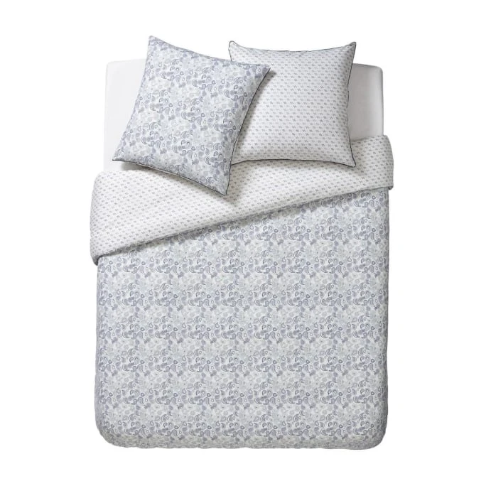 Die Bettwäsche-Garnitur Cadence von Essix bietet Ihnen das angesagte Paisley-Muster gleich in zwei Varianten. Auf der Vorderseite ist das Muster in verschiedenen detailreichen Versionen wild durcheinander gedruckt. Die Rückseite verfügt über ein gradlinieges Muster aus kleinen Symbolen. Die Bettwäsche von Essix ist aus hochwertiger Perkal-Baumwolle gefertigt, dadurch atmungsaktiv und besonders strapazierfähig. Der Bettbezug ist mit dekorativen Knöpfen versehen. Lassen Sie sich von Qualität und Design überzeugen!