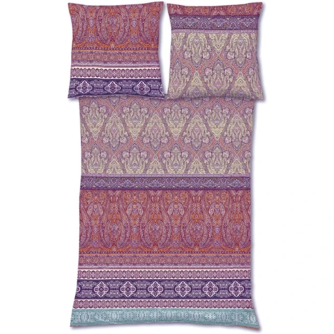 In dem farbenfrohen Bettwäsche-Set MODERN CLASSIC von fleuresse werden Sie wunderbar schlafen können. Sie ist aus hochwertigem Mako-Satin gefertigt und besteht aus 100% Baumwolle. Das leicht kühlende Material sorgt für eine perfekte Klima-Eigenschaft. Denn das Material wirkt klimaregulierend, dass bedeutet, dieses Set kann als Ganzjahres-Bettwäsche eingesetzt werden. Außerdem ist sie hautfreundlich und pflegeleicht und erleichtert ein schnelles Ab- und Beziehen durch den praktischen verdeckten Reißverschluss. Ein detailreich ausgearbeitetes Paisley Muster ist großzügig auf die Bettwäsche gelegt. Abgegrenzt wird es durch eine klassische Ornament-Bordüre. Ein wunderbarer Mix aus verschiedenen Mustern perfekt in Szene gesetzt. Die seidig glatte Oberfläche des feinen Mako-Satin Gewebes unterstreicht die Hochwertigkeit dieser Bettwäsche. Die Bettwäsche-Garnitur MODERN CLASSIC aus dem Hause fleuresse wird Ihren Schlafräumen eine ganz besondere Note verleihen – bestellen Sie jetzt und lassen Sie sich von den hochwertigen Materialien verwöhnen!