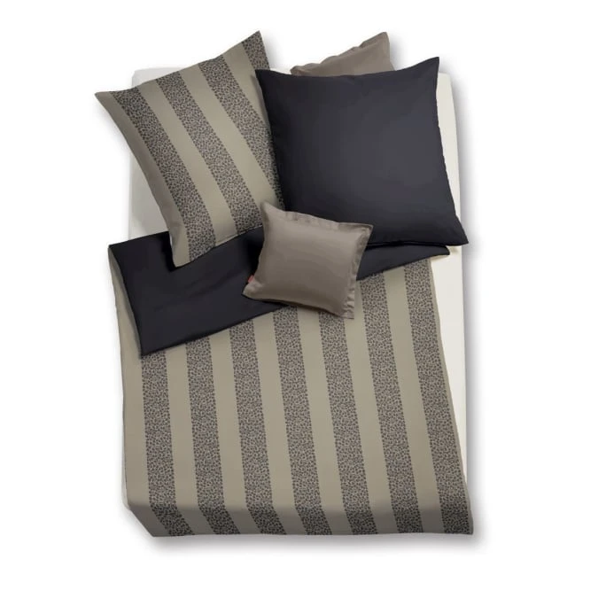 Königlich einschlafen wie im Palast: Das können Sie mit der eleganten Wendebettwäsche Palazzo von fleuresse! Die luxuriöse Bettwäsche bietet nicht nur höchste Qualität aus edlem Damast, sie beeindruckt auch mit ihrem noblen Design. Auf der einen Seite der Bettwäsche finden Sie ein stilvolles Streifendesign im grafischen Blumenmuster, auf der anderen Seite überzeugt die Wendebettwäsche Palazzo von fleuresse Sie mit schlichter Eleganz im Unifarben-Design. Die fleuresse GmbH ist eine Tochter des Dierig-Konzerns mit Sitz in Augsburg. Gegründet wurde Dierig 1805 im schlesischen Langenbielau. fleuresse bietet Ihnen die Vielfalt moderner Bettwäschekultur mit dem besonderen Grundsatz: fleuresse macht Bettwäsche mit Stil für Menschen mit Stil. Die Marke fleuresse entwickelt die modische Qualitätsbettwäsche aus gewebtem Brokat-Damast (100% Baumwolle) in allen gängigen Standard- und Übergrößen. In den verschiedenen Kollektionen finden Sie vieles: Florale Muster ebenso wie grafische Dessins, dazu außergewöhnliche Kombinationen und Bettwäsche, die von moderner Kunst inspiriert ist. Lassen Sie sich von der wunderbaren Hochwertigkeit der luxuriösen Produkte der Firma fleuresse überzeugen und bestellen Sie noch heute!