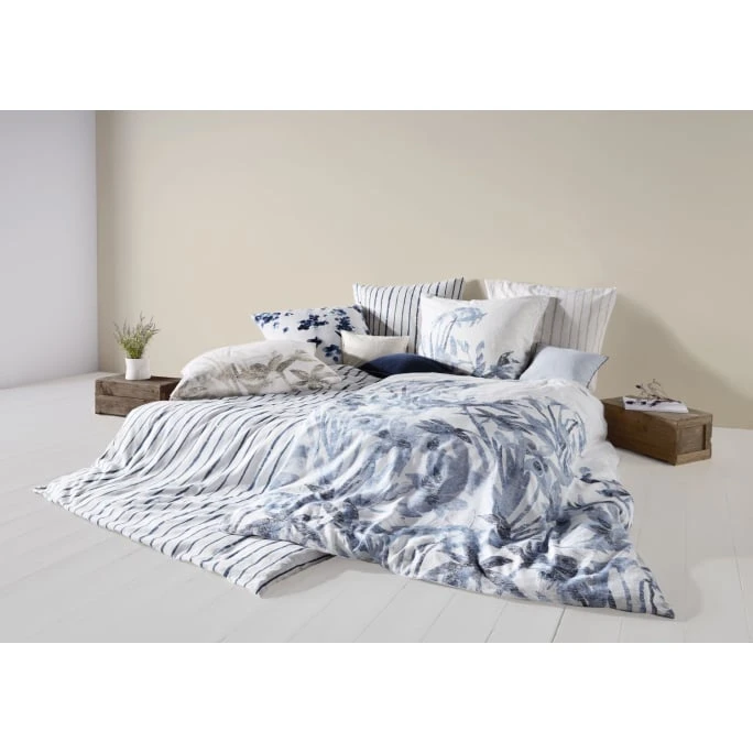 Das moderne Wendebettwäsche-Set PROVENCE CASSIS von fleuresse punktet durch das elegante und sportive Design. Die strukturierte Bettwäsche ist aus einem Materialmix bestehend aus 50% Baumwolle und 50% Leinen gefertigt. Der hochwertige Leinen-Baumwoll-Stoff ist nach Öko-Tex Standard 100 zertifiziert und außerdem angenehm kühlend und wunderbar weich. Um den französischen Landhaus-Stil zu unterstreichen, sind die Bezüge bereits gewaschen, wodurch eine edle leichte Knitter-Optik entsteht. Dadurch erhält die Garnitur eine eigene persönliche Note und wird zum perfekten Begleiter für den Sommer. Das feine Blumenmuster komplettiert den harmonischen Look. Die Bezüge verfügen über praktische Reißverschlüsse, wodurch ein leichtes Ab- und Beziehen garantiert ist. Mit der eleganten Wendebettwäsche-Garnitur PROVENCE CASSIS von fleuresse sorgen Sie in Ihrem Schlafzimmer für einen stilvollen Eyecatcher. Wir bieten Ihnen weitere Bettwäsche-Sets in unterschiedlichen Farbvarianten und verschiedenen Größen aus dieser exklusiven Serie in unserem AMBIENDO Shop an. Lassen Sie sich von der wunderbaren Hochwertigkeit der luxuriösen Produkte der Firma fleuresse überzeugen und bestellen Sie noch heute!
