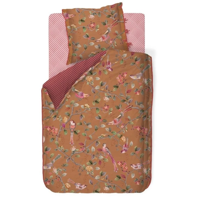Freuen Sie sich auf erholsame Stunden mit dem romantischen Pip Studio Good Nightingale Bettwäsche-Set aus Baumwoll-Perkal werden Sie in eine farbenfrohe Welt entführt. Good Nightingale überzeugt mit einer fantasievollen Designwelt mit Blüten- und Blumenmustern, Vogelmotiv und märchenhaften Farben. Gefertigt aus 100% Baumwoll-Perkal ist die Bettwäsche-Garnitur besonders weich und Formstabil. Der Kopfkissenbezug ist mit einer edlen Oxford-Bordüre und Schleifenverschluss, der Bettbezug mit einem Reißverschluss ausgestattet. Sowohl der Kopfkissenbezug, als auch der Bettbezug haben auf der Rückseite Streifenmuster und können beidseitig verwendet werden und so einen tollen Mix & Match- Effekt erzielen. Good Nightingale ist eine romantisch verspielte Kollektion mit ihrem zauberhaften Design, der ein Blickfang in Ihrem Schlafzimmer ist. Bestellen Sie jetzt das herrliche Bettwäsche-Set Good Nightingale von Pip Studio und erleben Sie das herzallerliebste Design hautnah.