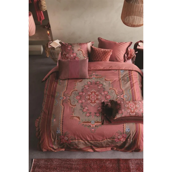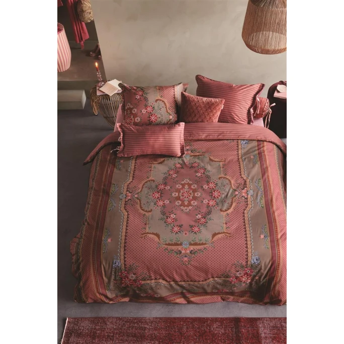 Erleben Sie den komfortablen Luxus der wunderschönen Pip Studio Chic-Kollektion hier mit dem herrlichen Bettwäsche-Set. Chic ist inspiriert von klassischen Teppichen mit Rosetten, Fantasieblumen und einer Variation aus Bögen, Rauten und Streifen. Der Bettbezug hat eine Oxford-Bordüre und ist aus 100% feiner Perkal-Baumwolle hergestellt, welche besonders weich, anschmiegsam und pflegeleicht ist. Perkal-Baumwolle ist durch die Verwendung von feineren Garnen und einer höheren Fadenzahl weicher und angenehmer ist als normale Baumwolle. Zudem ist die Garnitur besonders pflegeleicht, denn sie kann ganz einfach in der Maschine und im Trockner gereinigt werden. Die Rückseite ist mit einem Streifenmuster bedruckt, sodass die Garnitur im Wendedesign beidseitig verwendet werden kann. Setzten Sie traumhaftschöne Akzente in Ihrem Schlafzimmer mit dem Chic Bettwäsche-Set von Pip Studio.